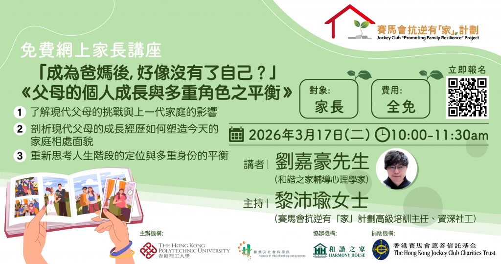 賽馬會抗逆有「家」計劃 – 【免費網上家長講座】